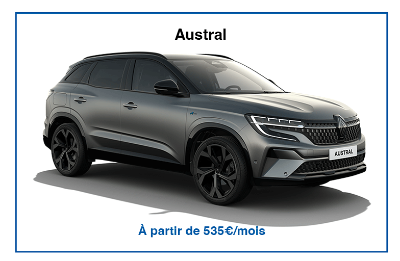 Optimisez votre TCO avec nouveau Renault Austral fullhybrid ETech, sans recharge, grâce à une consommation moyenne à partir de 4,5L/100 km* en ce moment, profitez de l’entretien offert pour une LLD 36 mois / 90 000 km**