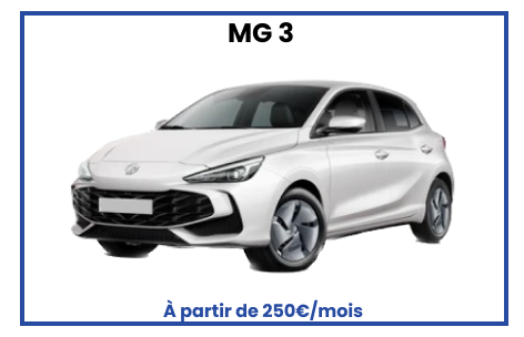 Chez MaFutureVoiture, nous vous offrons la possibilité d’essayer les modèles de la gamme MG, reconnus pour leur design dynamique, leur technologie embarquée et leur excellent rapport qualité/prix. Réservez votre essai et trouvez la MG faite pour vous.