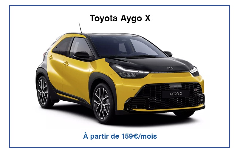 La Toyota Aygo X est une citadine compacte qui se distingue par son design audacieux et sa maniabilité exceptionnelle en milieu urbain. Équipée d’un moteur essence 1.0 litre de 72 ch, elle offre une conduite agile et économique. Son intérieur moderne propose un écran tactile de 9 pouces compatible avec Apple CarPlay et Android Auto, assurant une connectivité optimale. Avec une garde au sol surélevée et des dimensions compactes, l’Aygo X est parfaitement adaptée aux déplacements en ville.