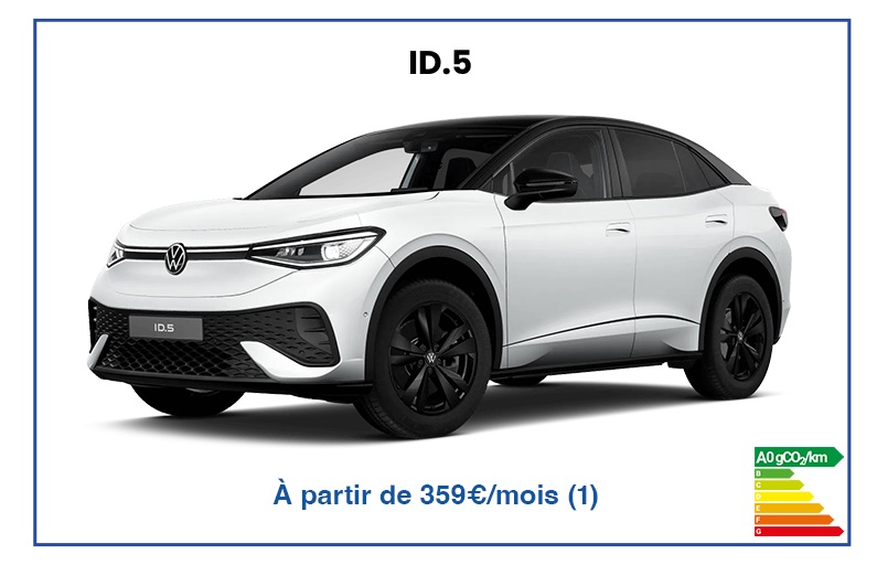 (1) Exemple pour un ID.5 Pro Life Max neuf en Location Longue Durée pour 30 000 km maximum. Location Longue Durée sur 37 mois.